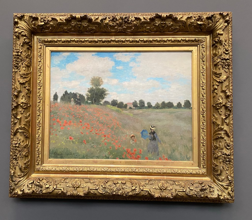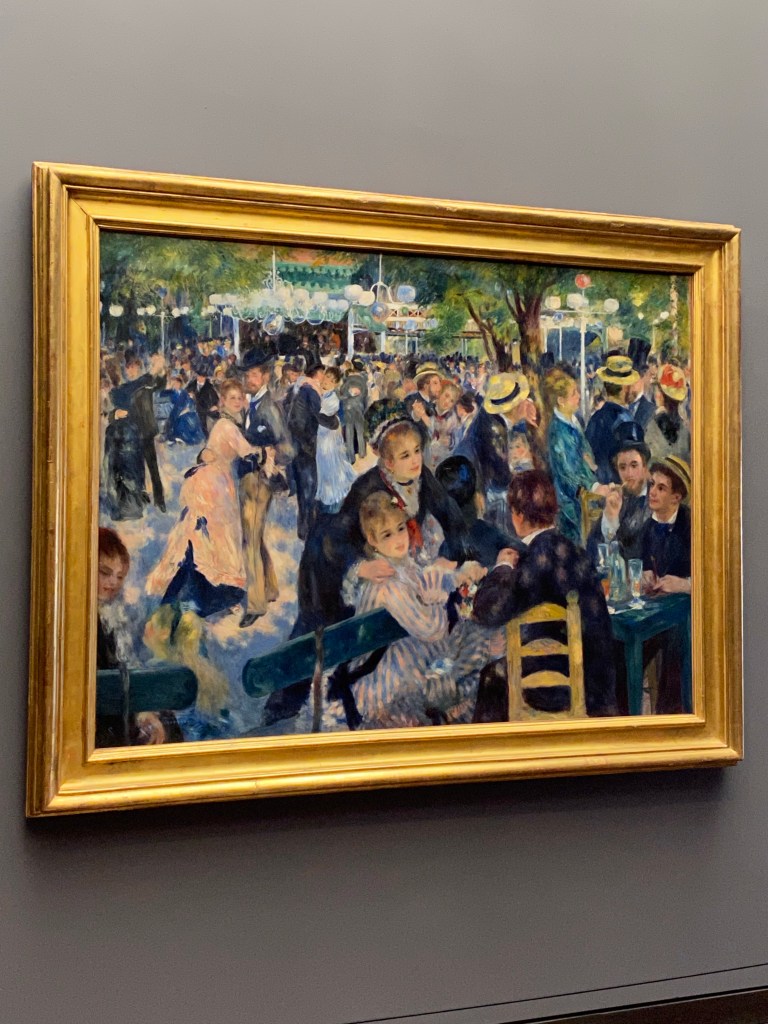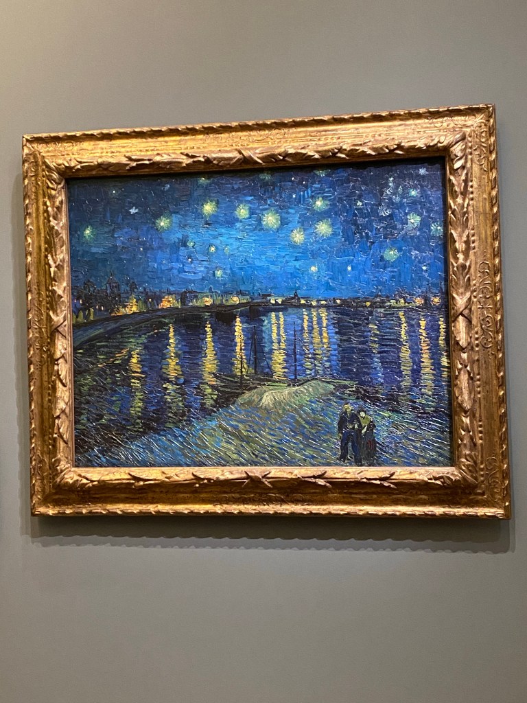 No favorites. How could I? I really loved Manet’s painting of Berthe Morisot being playful behind a fan, the Renoir dancers (City/Country), VanGogh’s Starry Night Over the Rhone (different front Starry Night, but reminiscent in hues), Cezanne, Gauguin, Degas, oh my! I also enjoyed lesser known artists and beautifully crafted Art Deco furniture, statues, and porcelaine objects.