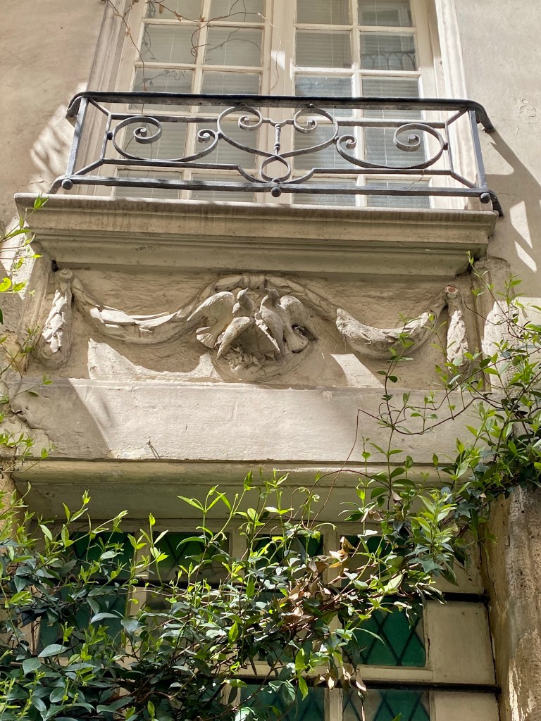 Someone heard of a tale of two doves – male and female – and somehow the female was trapped inside a building. The male dove continued to bring her food every day while she was trapped. Finally a kind human discovered the situation and freed the dove. The lovebirds were commemorated with this lovely little sculpture on the building.