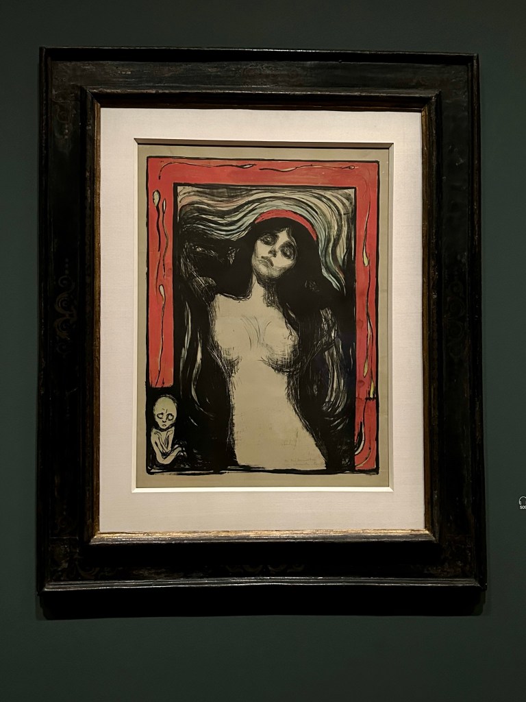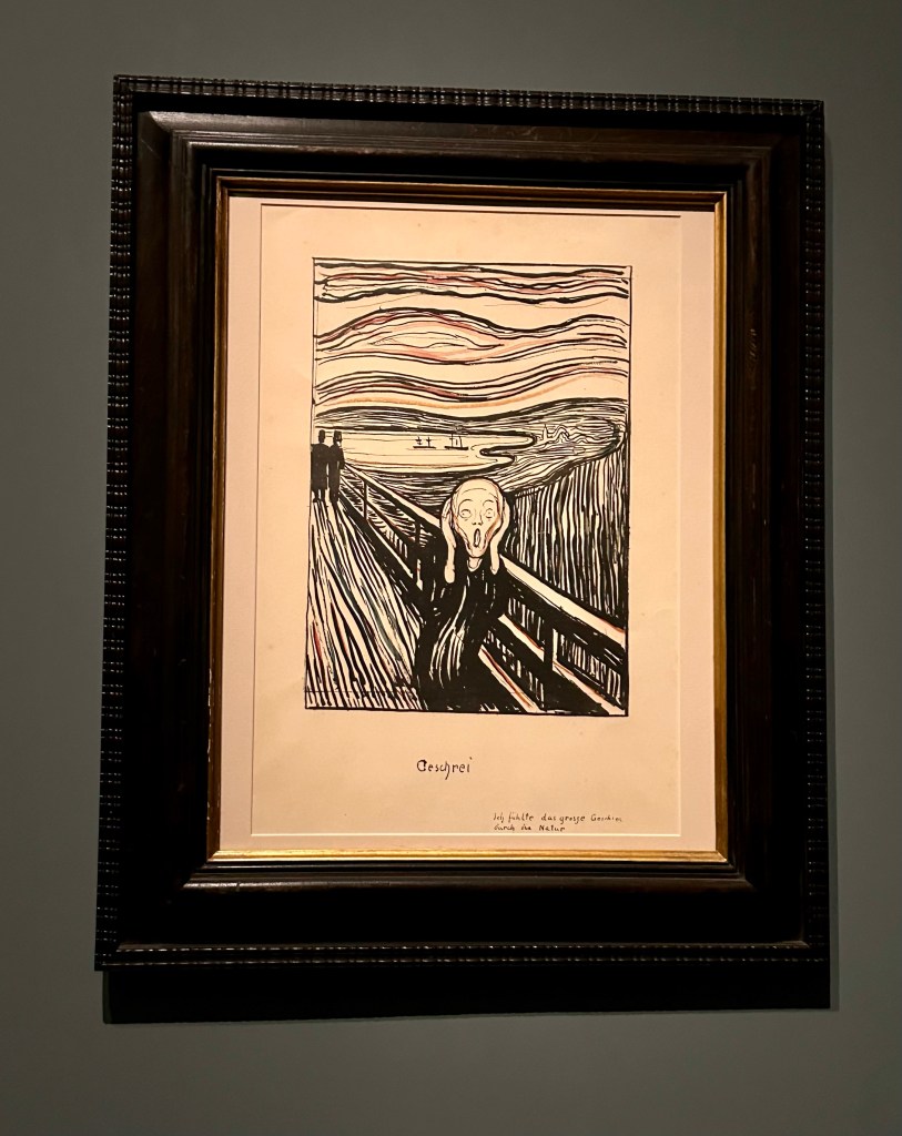 Yes, he is known for The Scream, a wonderful if not sad and somewhat disturbing piece, given what I now know about Munch’s familial history with depression and mental illness, but it is quite the lithograph, even though it has been memed and mass produced for decades. There were plenty of other wonderful expressions and moods in his body of work.