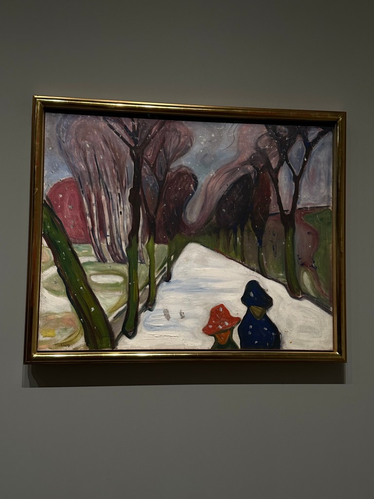 Purchasing a timed ticket was another smart move (I was on a roll), because there was a line, but I was ushered into the building right away. I’m glad I went to see this body of work. I didn’t know very much about Munch’s work, or life, and well, I can’t say that any more. I had paid a little extra for the audio tour, and listened to every single essay available. I just took my sweet time. When I came to the end, I felt so fulfilled. Until I exited and saw some Munch merch (sorry) for sale – which included a piece I had wanted to see, but didn’t. How did I miss it? I turned around and re-entered the exhibit, going against the crowd, tracing my steps. And sure enough, there was an entire ROOM I’d missed, and it included the piece I had really wanted to see.