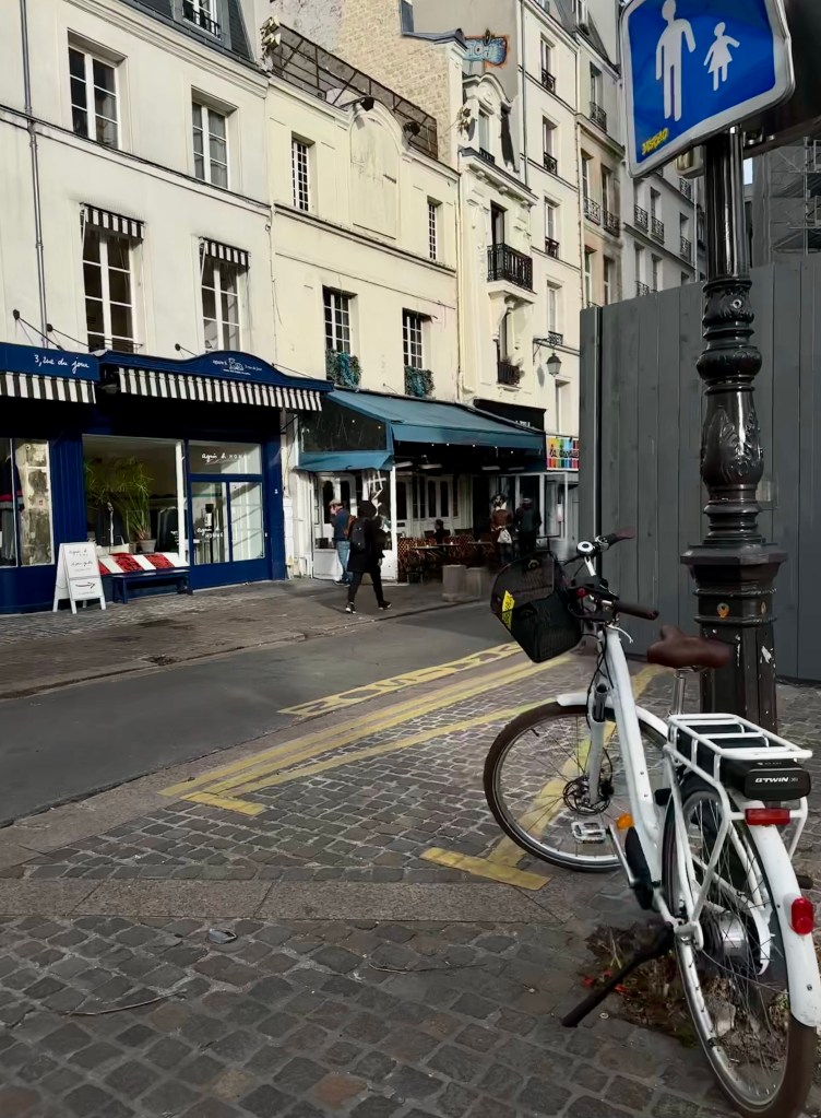 After securing the souvenir, I returned to my neighborhood, and took a seat at Café du Métro for lunch and people watching. So many dogs today! I saw them on the Métro, in backpacks (on the backs of their bike-riding owners), on leads, without leads (extremely well trained), and in stores. I wasn’t fast enough with my phone/camera to capture most of them, and I also didn’t want to be rude.