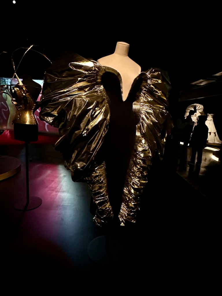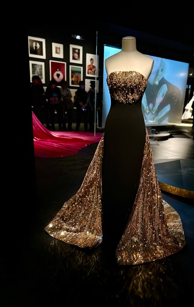 I walked around, amazed. The modern house has kept true to her vision, from what I can tell. They’ve stepped it up a few notches, too, for sure. I thought if I were a celebrity, could I pull this off? I’m not so sure I could. I think these pieces would wear me. It takes a certain type of personality and a lot of courage to don some of these ensembles. I could totally see doing it for a photo shoot, but to actually wear one of these to an event? Wow. Still, what a visual delight!