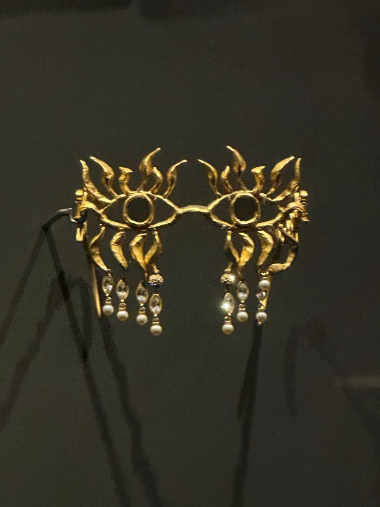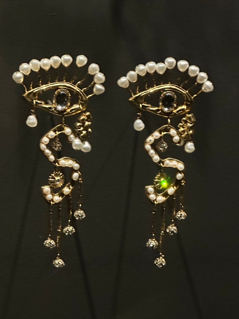 The sheer weight of some of these articles of clothing was astounding. The fabric alone is oftentimes weighty (remember Lady Gaga in that red number at President Biden’s Inauguration?), and adding to that, Schiaparelli often uses/used a lot of beading and even metal structures today.