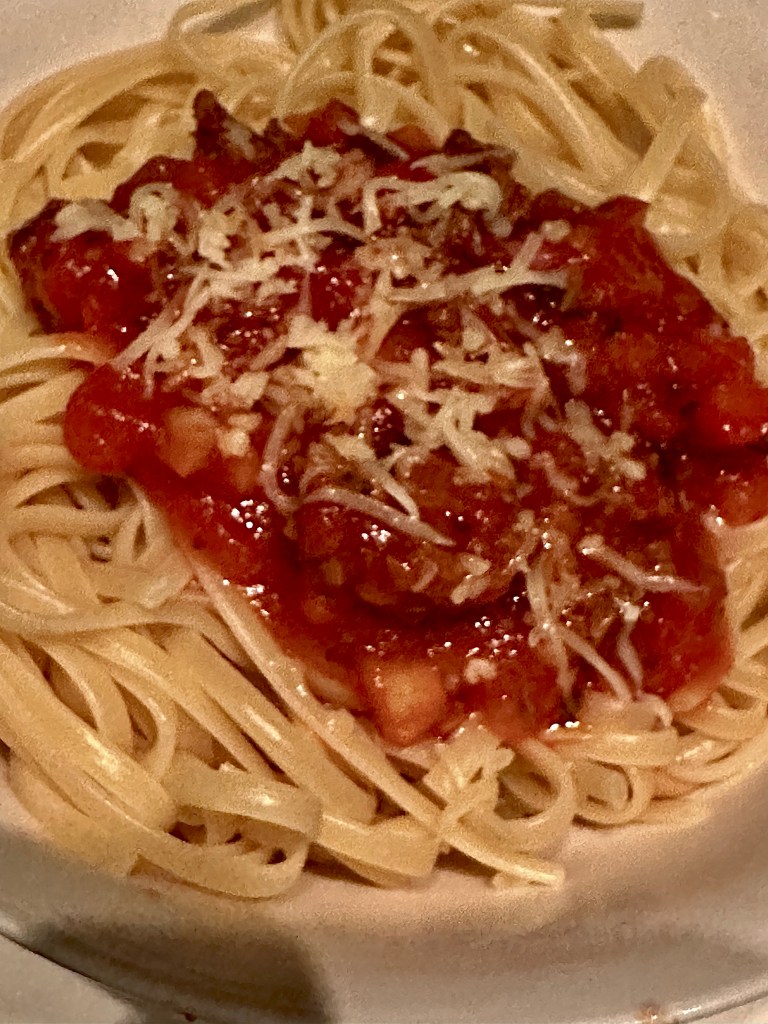 I needed some groceries, and so did a little shopping and meal planning for myself. Ended up making a nice tomato basil pasta sauce with peppers and onions and beef, and served it with linguini and a baguette.