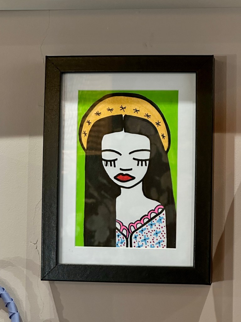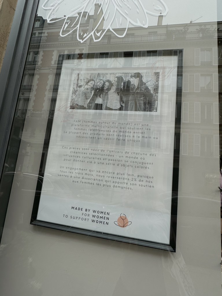 A new shop! I passed a fun shop « Made by Women, For Women, To Support Women. » So, of course I went in. So many delightful pieces! I lingered. And I came upon a sweet little framed piece of art that I just had to buy. It reminded me of myself. Then, I bought another – which reminded me of my dear friend, Vanessa. I had to have them both. I had a lovely conversation with the owner. Yes, she complimented my French, lol, but I was just so thrilled to be able to converse so easily with her. She had moved to Paris (from Colombia) 13 years ago, and of course was fluent in French. She invited me this Saturday, to return to the store for wine, cheese and socializing with the artists. Bien sûr!!! I will be there with bells on! I can’t wait! We now follow each other in Instagram.