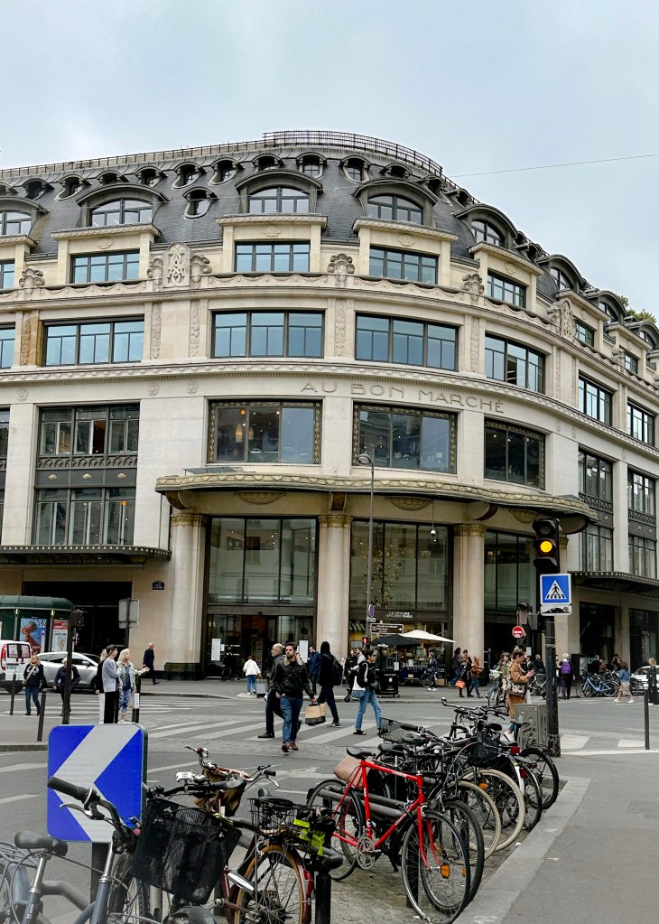 From here, I did my grocery shopping at that most beautiful store ever (La Grande Épicerie). In one aisle, I asked a woman to help me choose the right laundry detergent. I don’t know why, but this particular product is not easy to decipher in French. Then I bought some special napkins, thinking ahead, because I’ll be hosting my new friends (the American couple who I met the other day), for an Apéro in my apartment when they return to Paris from their cruise this weekend. (Too soon to buy food.)