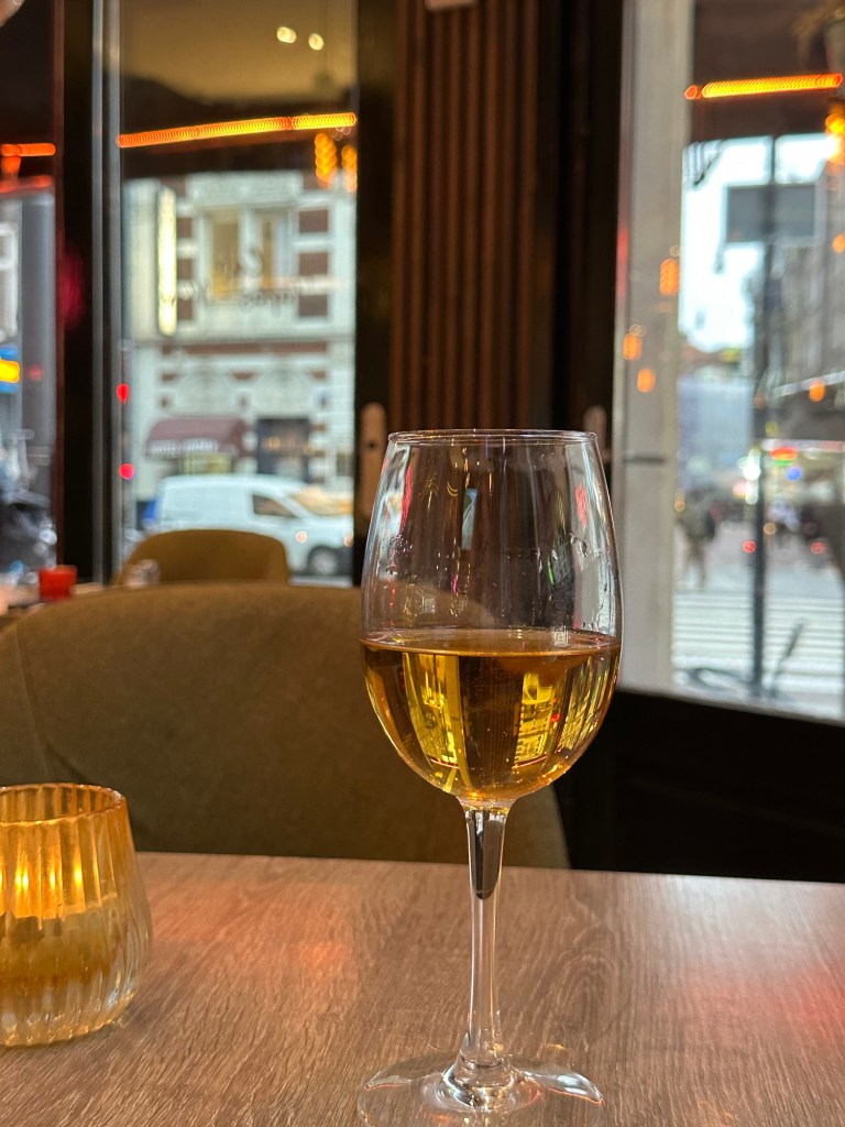 It started to drizzle and I was without my trench coat or umbrella. I ducked I to a restaurant. I ordered my meal and a glass of wine. The people were so kind.