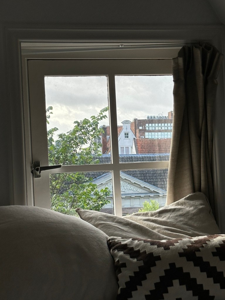 So I’m here in my charming room in the attic of a 17th Century house on one of the canals. Built in 1615 in the Dutch Renaissance style.
