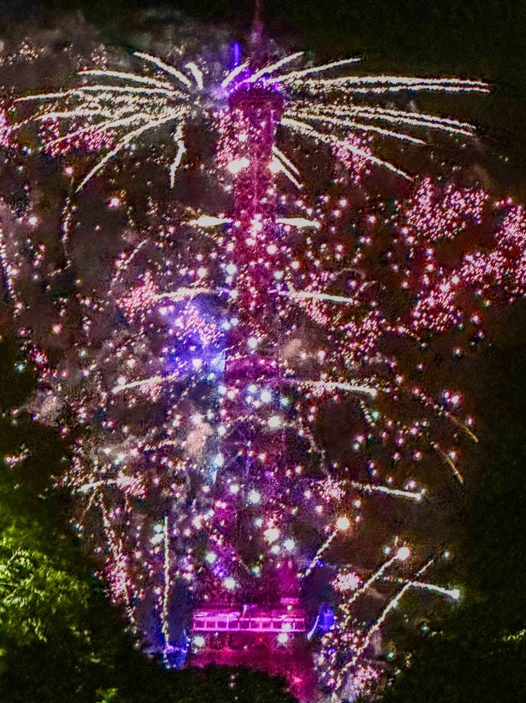 Recapping. Last year, I spent the morning watching the flyovers on the terrace with Luigi and his sister, Chépas (r.i.p.). Then, Jennifer and I had dinner with a view of la Tour Eiffel, and afterwards, she and I sat in the street on a blanket watching magnificent fireworks burst forth from the la Dame de Fer till midnight.