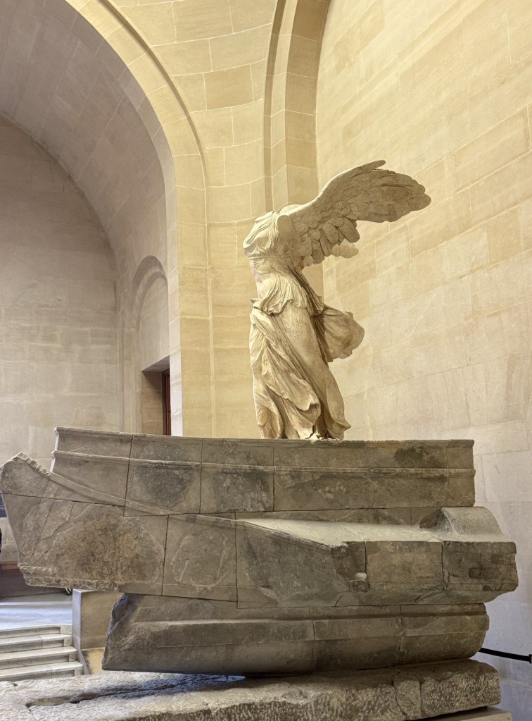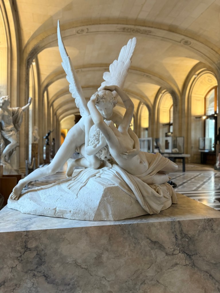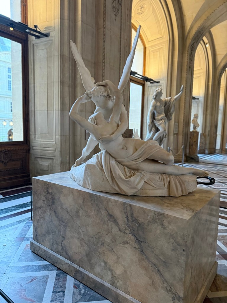 It was early when I headed to the Louvre. I hoped they’d let me in early, and they did. There were no lines. Plenty of people were scattered around the square and I.M. Pei’s iconic pyramid. I found myself ducking here and there as everyone was taking selfies and photos. I always wonder how many photo albums I’m in!